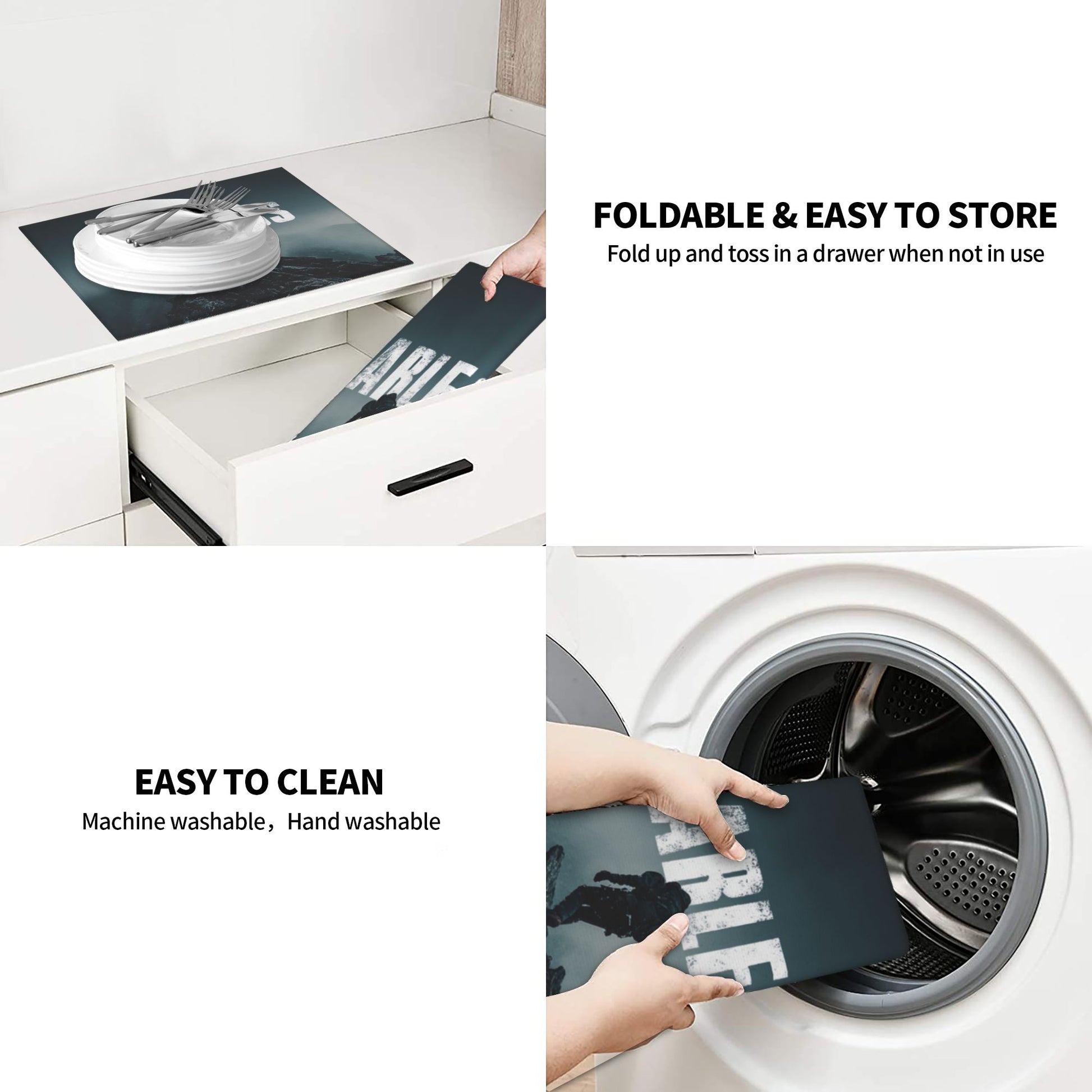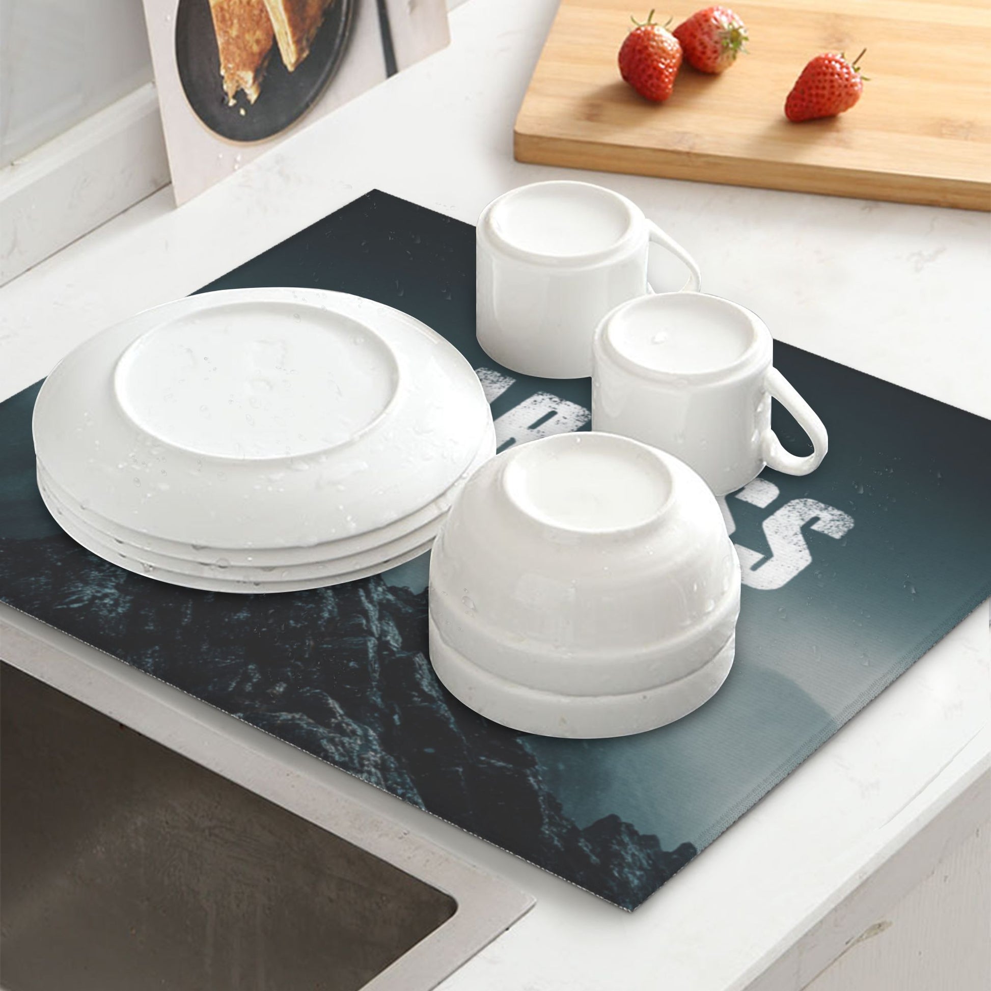 Fearless Climber Kitchen Drying Mat – 18x16in Non-Slip Absorbent Dish Mat with Bold Mountain Hiker Graphic