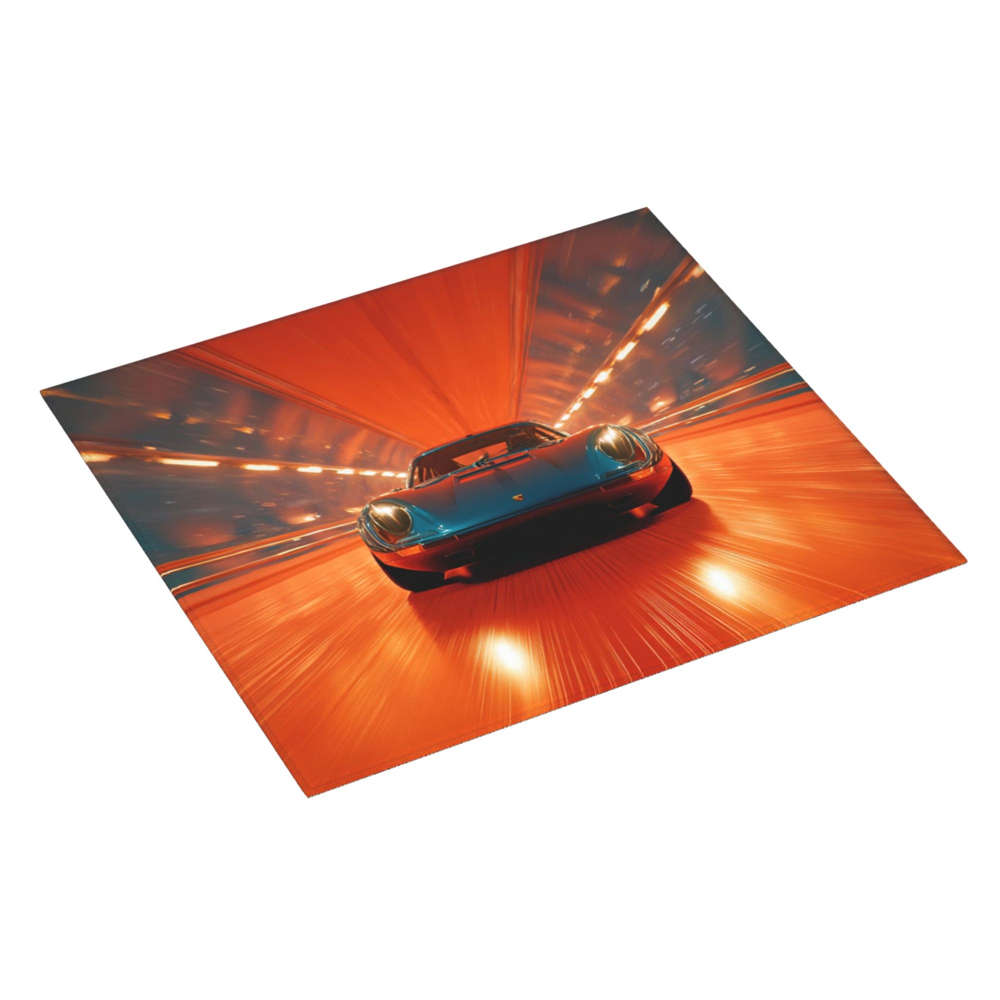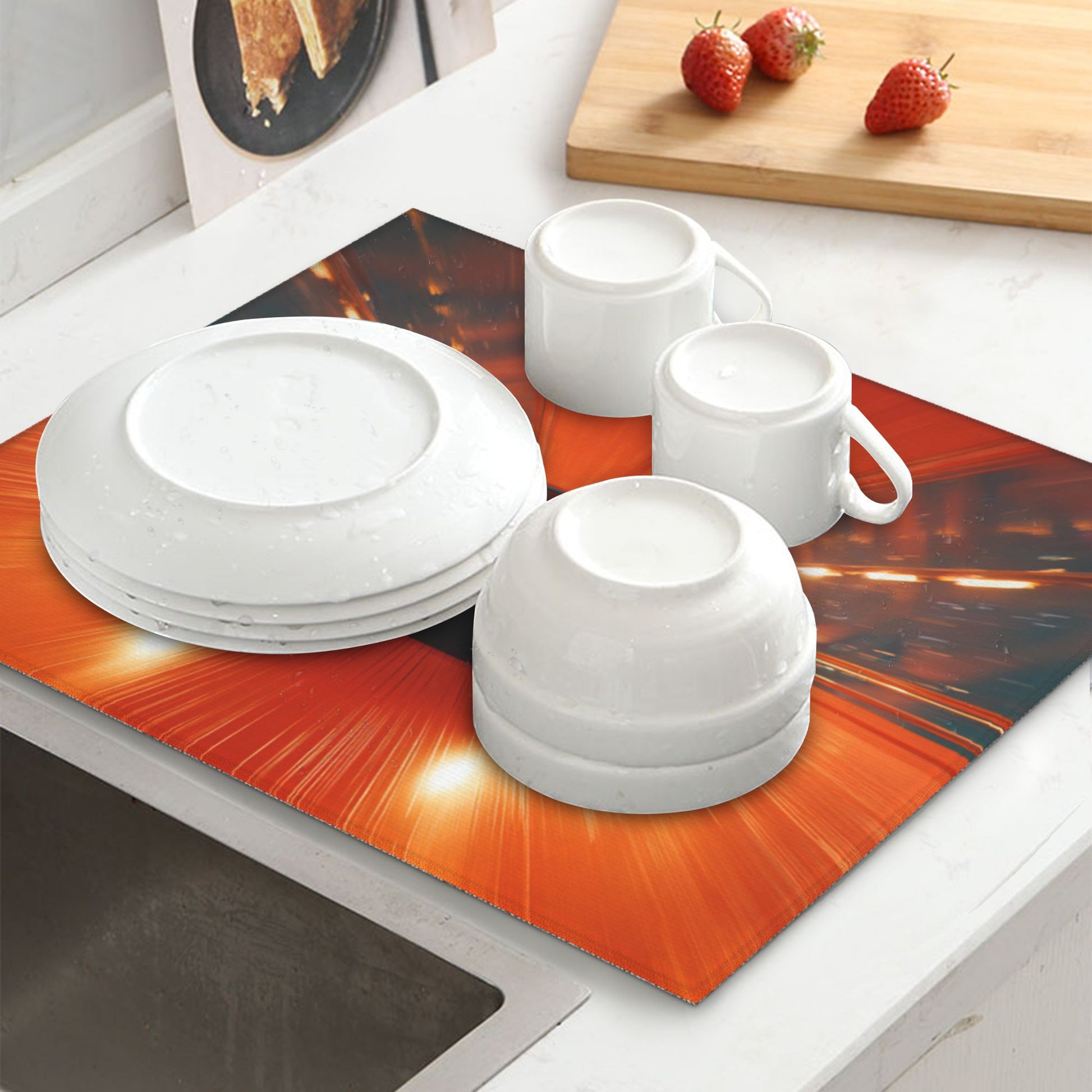 Bring the thrill of speed into your kitchen with this visually striking drying mat. Featuring a retro sports car racing through a glowing orange tunnel, this mat blends vintage cool with modern energy. The powerful color contrast between deep red-orange and metallic blue creates a dynamic, high-impact aesthetic perfect for car enthusiasts and design lovers alike.
