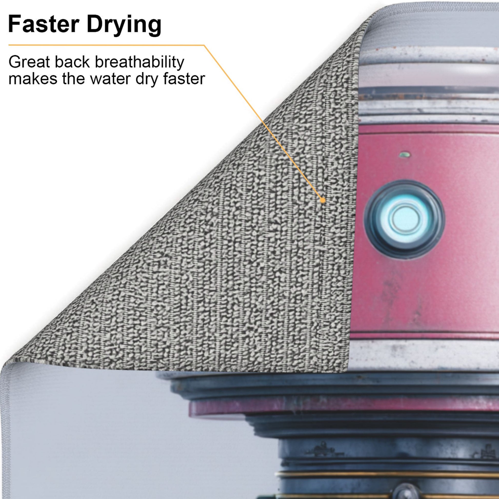 Pink Robot Kitchen Drying Mat – 18x16in Cute Futuristic Absorbent Counter Mat with Non-Slip Base