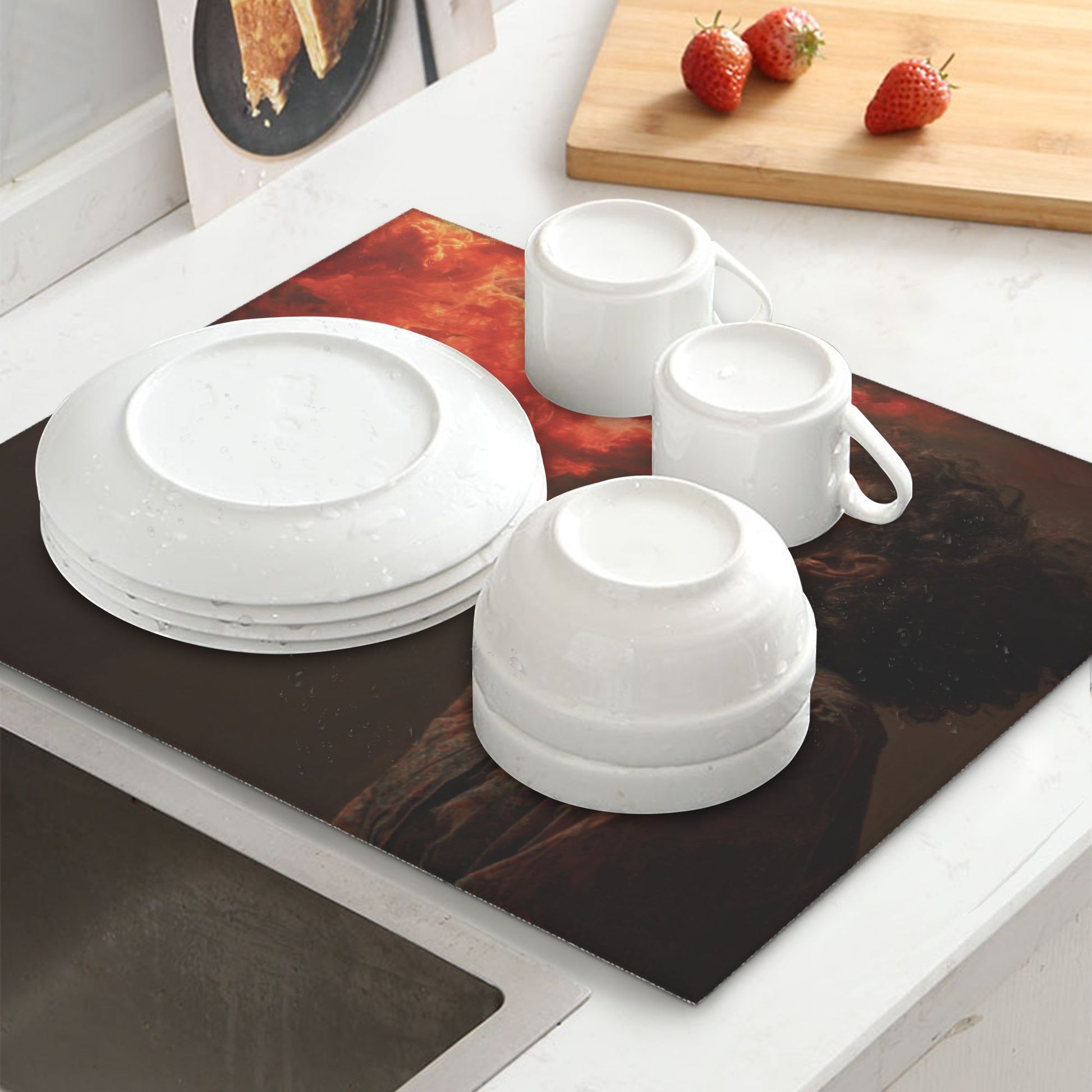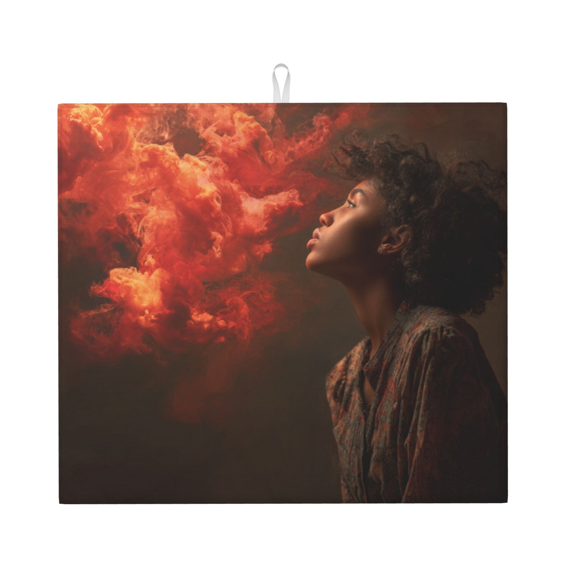 Red Mist Portrait Kitchen Counter Drying Mat – 16×18in Absorbent & Non-Slip Mat
