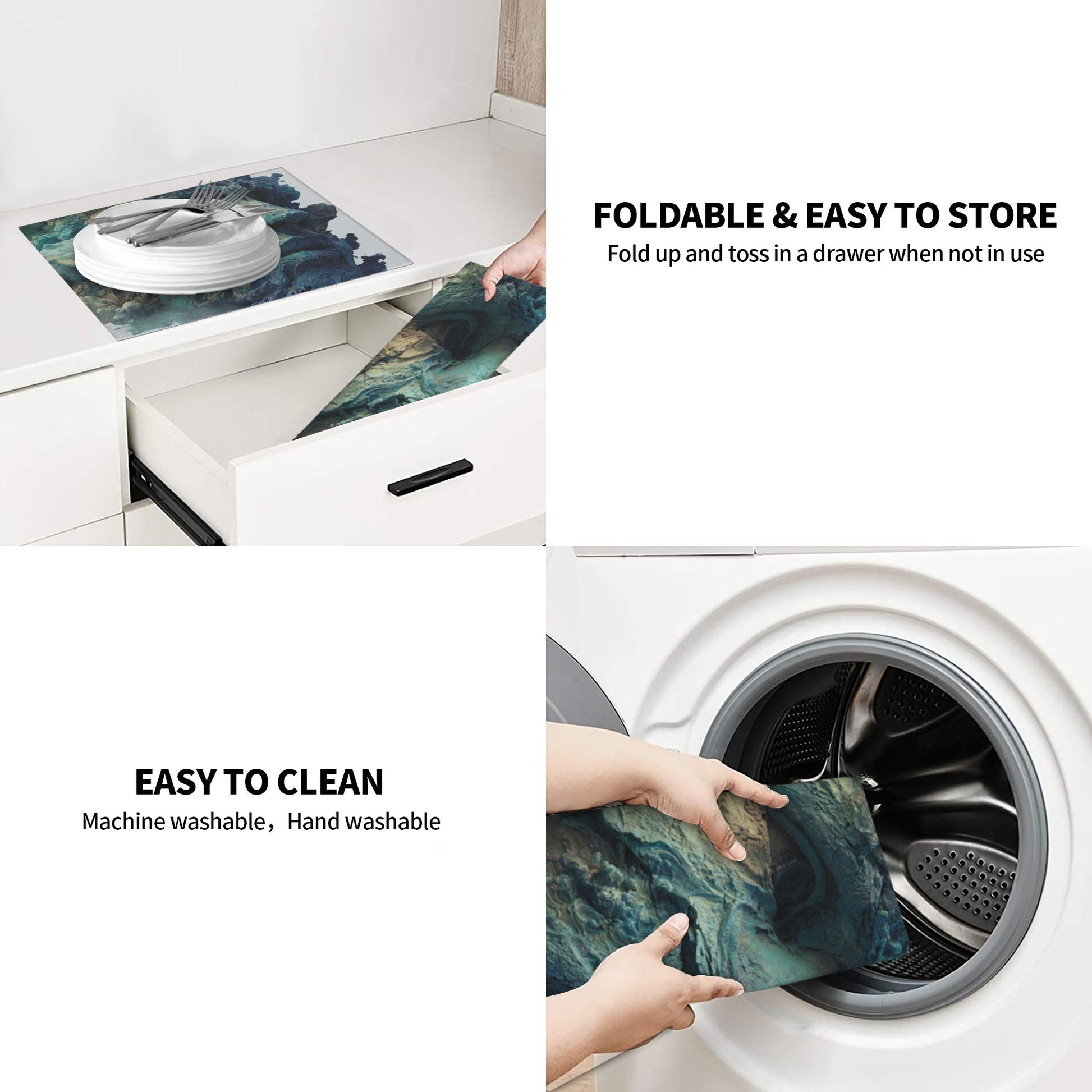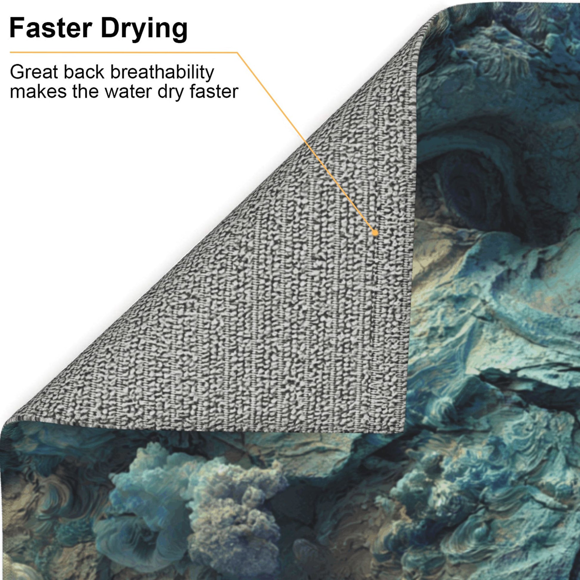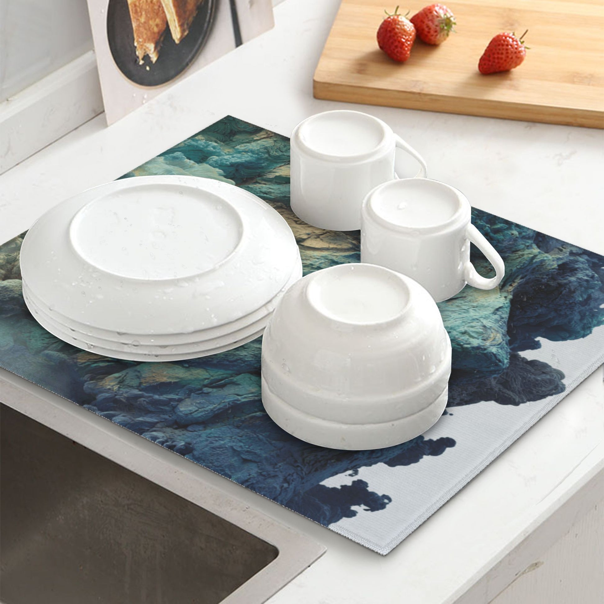 Sculpted Blue Rock Face Kitchen Drying Mat – 18x16in Absorbent & Non-Slip Counter Mat with Artistic Design