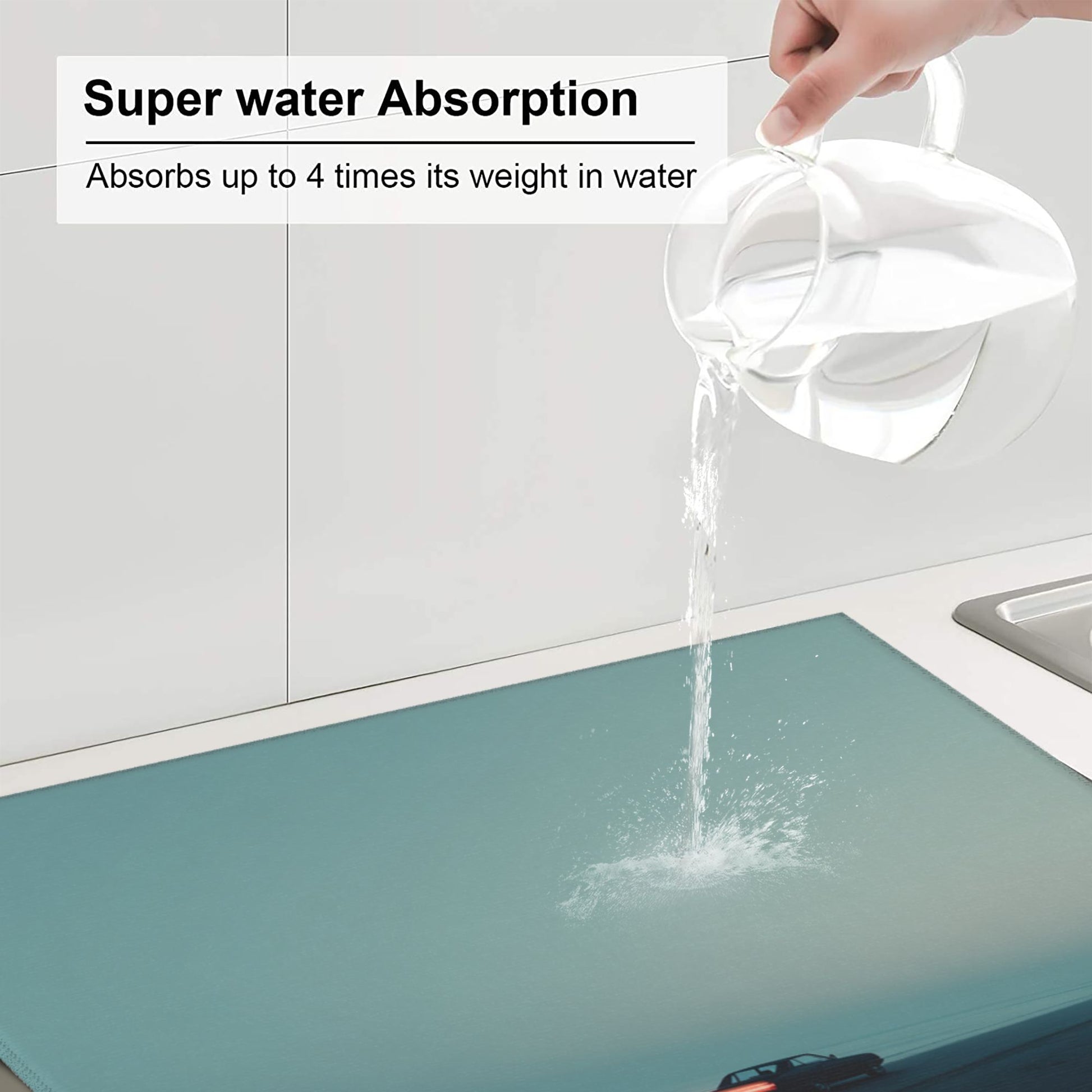 With a generous size of 18 x 16 inches (46 x 41 cm), this drying mat is perfect for use beside your sink, under dish racks, coffee makers, or even small appliances. It absorbs excess water efficiently and keeps your countertop dry and safe.